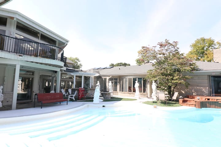 Tucked in the historic district. Huge 5000 sqft open concept home with huge pool 12 person spa 5 bedrooms 55 baths a gourmet kitchen 9 hdtvs a billiards table 2 multi person showers and a giant master suite. For fun at home and when you leave your airbnb property in dallas this mansion has you covered.