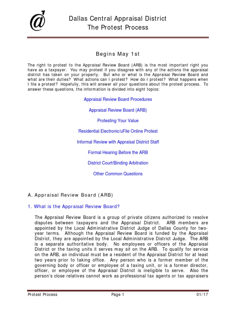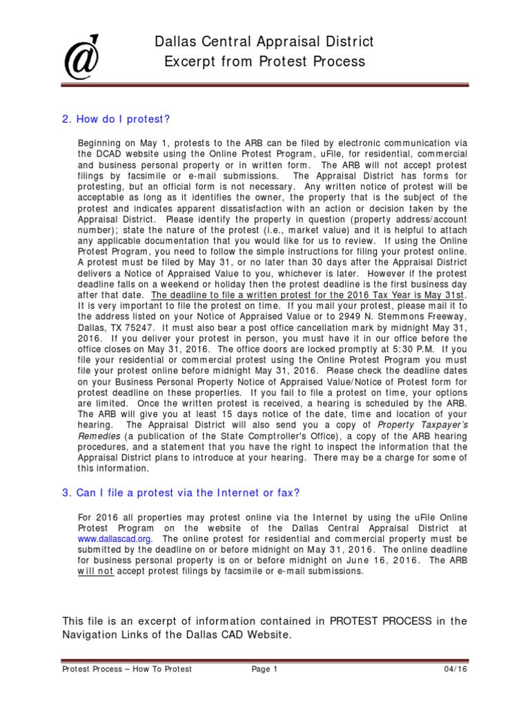Dallas Central Appraisal District The Protest Process Pdf
