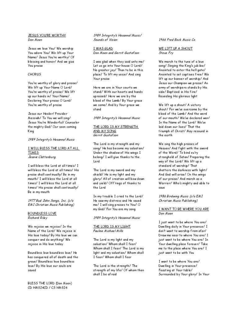 Don Moen Lyrics Bless The Lord Lamb Of God Jesus Free 30 www.scribd.com