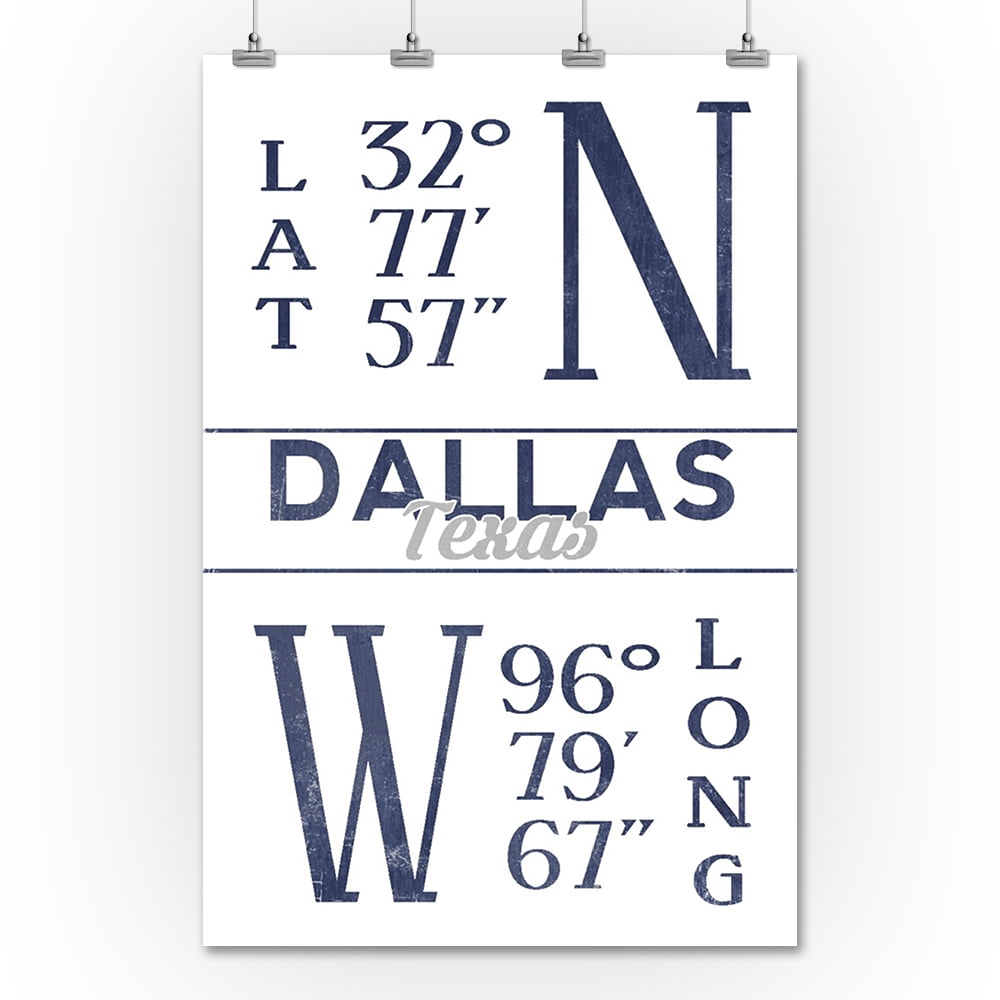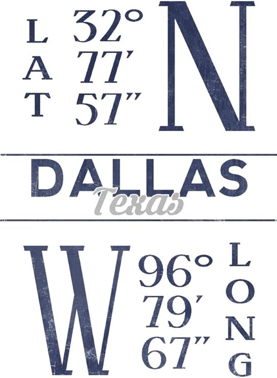 Amazon Com Dallas Texas Latitude And Longitude Blue 12x18