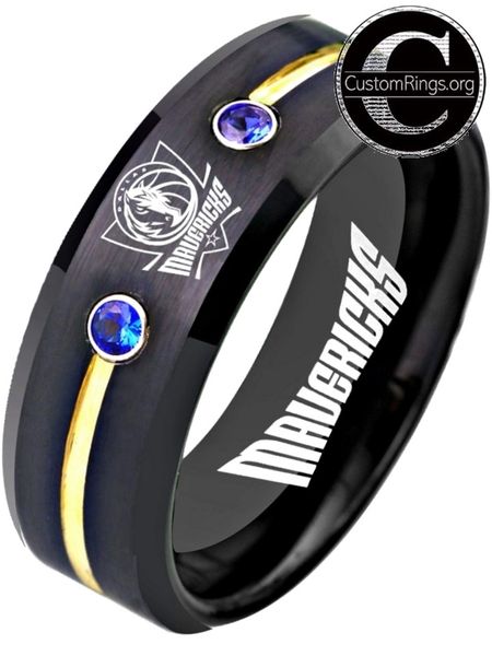 Dallas Mavericks Logo Ring Mavs Nba Black Gold Blue Cz Ring Size 6