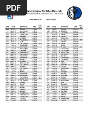 Dallas mavericks schedule pdf. 2019 20 schedule date opponent score record 1023 vs. Chime in for a cause join us in giving back. Visit espn to view the dallas mavericks team schedule for the current and previous seasons.
